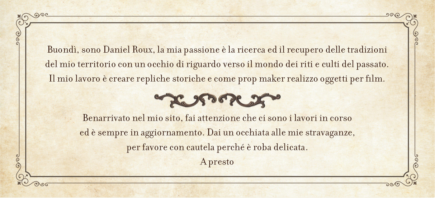 Lavoro nel campo della storia e realizzo repliche archeologiche e non solo. Dai un’occhiata alle mie stravaganze, per favore con cautela perché è roba delicata.