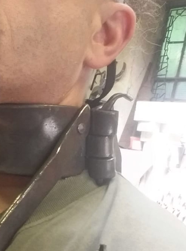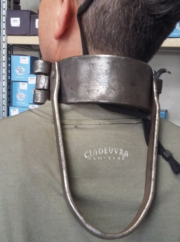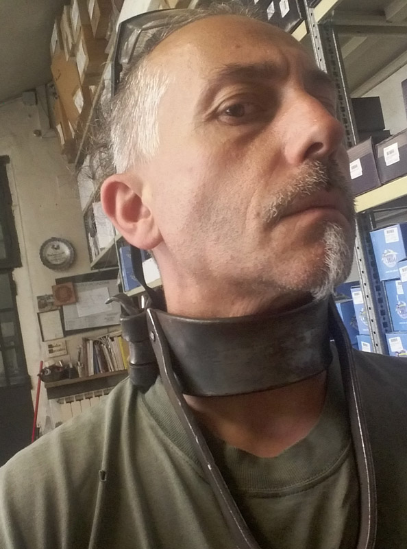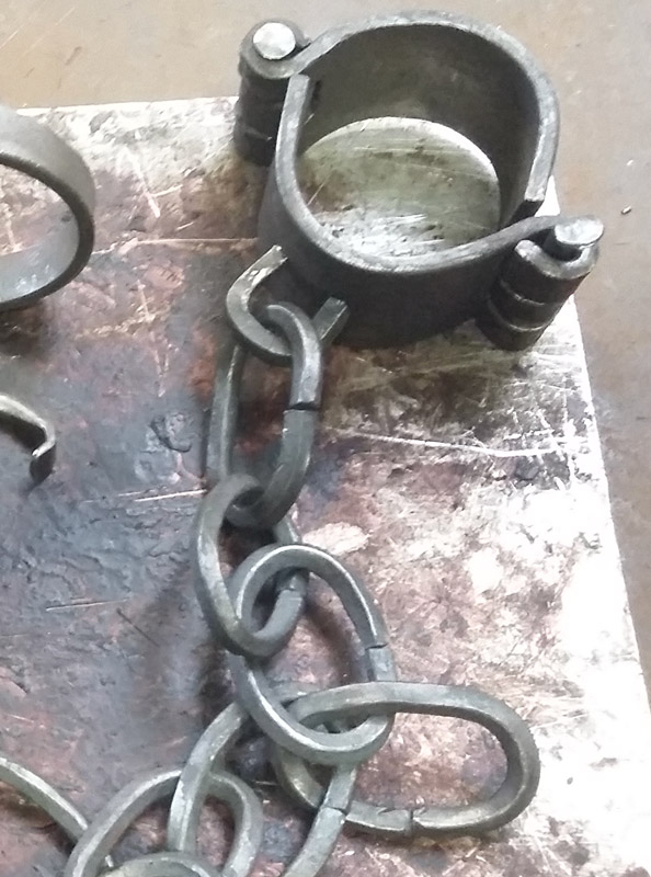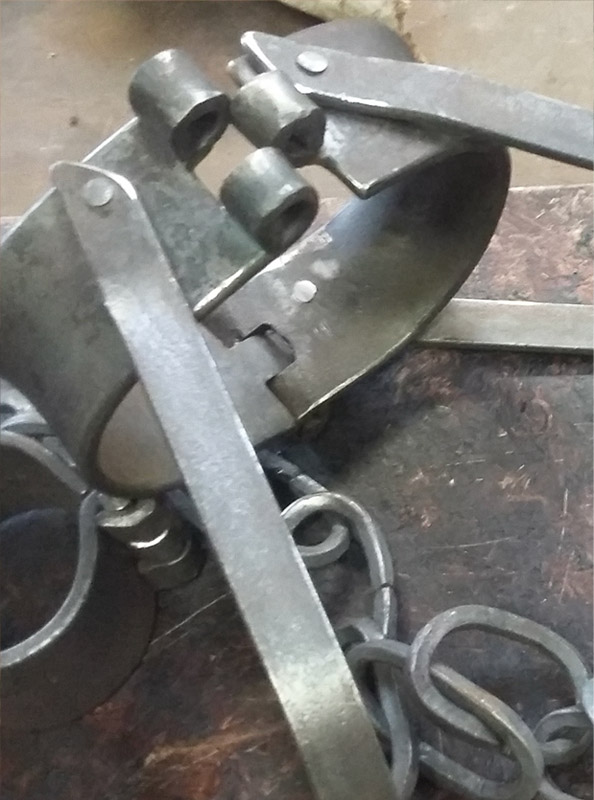 Lucius Malfoy prigioniero ad Azkaban. Forgiatura del collare del detenuto e delle manette.