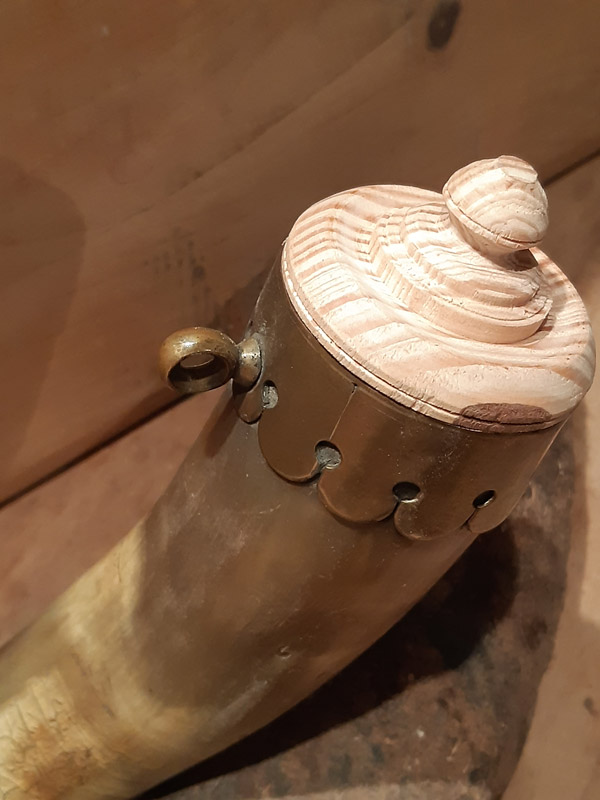 Il corno da polvere viene utilizzato per trasportare e canalizzare la polvere da sparo. Lo si può trovare fabbricato in vari materiali quali corno, rame, legno, ottone o avorio. Il corno da polvere viene usato per le armi ad avancarica, cioè che si caricavano dalla bocca della canna, inserendo prima la polvere di lancio tramite il beccuccio in rame a leva di dosaggio, poi un disco di feltro o cartoncino detto ”borra” e infine la pallottola.