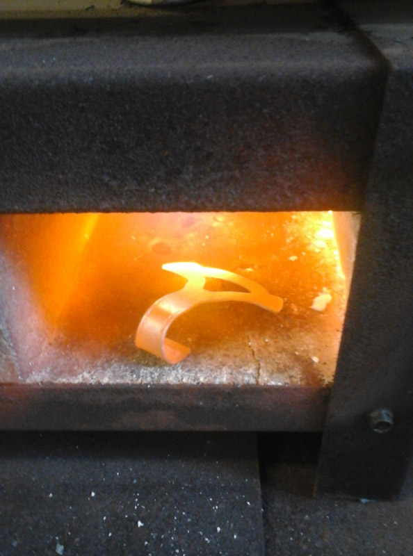Forgiatura e brunitura della fibbia in ferro. Infine assembramento delle parti.