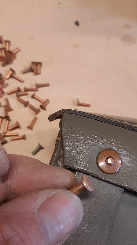Basandomi sulle giberne ho cercato dei chiodi uguali per ribattere i ganci e rendere il restauro il più efficace possibile.