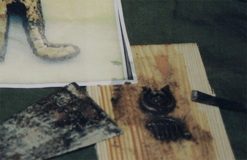 In pochi minuti, sotto l’aria dei ventilatori, lo stampo si raffredda. Estratta la gomma dalla centrifuga, con l’aiuto di una pinza viene aperta la conchiglia ed estratta la fusione.