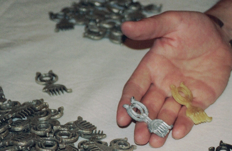 Terminato l’antico pendaglio lo si porta in fonderia per ottenere il calco e la produzione seriale.