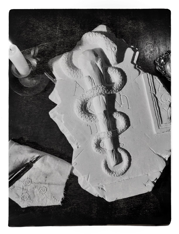 Bassorilievo raffigurante il simbolo greco di Asclepio.