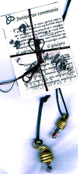 Materiale: metal Zama, vetro, 3 bacche di Ginepro.