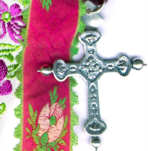 Attraverso la sua figura possiamo riconoscere le sue radici nella croce di San Maurizio la cui storia risale al Santo Re Sigismondo che fondò ad Agaune (Savoia) l’omonimo monastero. Realizzata in materiali differenti la si può trovare in rame, oro ed argento. Quest’ultima, la più comune, la si trova nei corredi normalmente accompagnata da un cuore in lamina d’oro e da un nastro in seta.