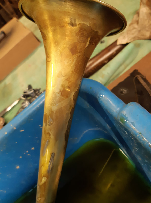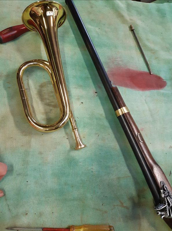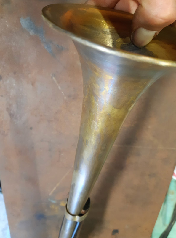 Recuperata una tromba in ottone ed una replica di facile si smontano le parti e si preparano i componenti.