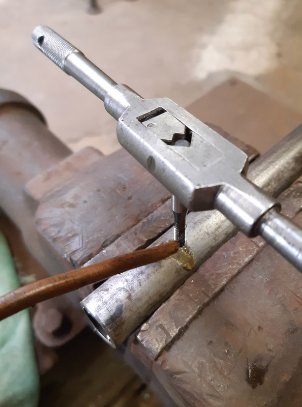 Foratura e filettatura della nuova canna di fucile. La prima metà in ferro la seconda in ottone.